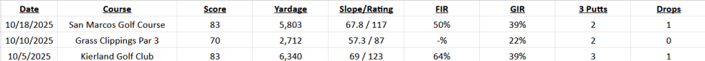 With October in the books, and the handicap trending in the right direction, I will likely have a down November with more travel and family in town.